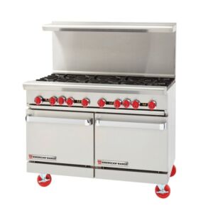 33. American Range AR-8 48" Natural Gas 8 Burner Heavy Duty Restaurant Range with Two Space Saver Ovens - 310,000 BTU