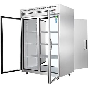 19. Everest ESPT-2G-2S 49 5/8" Two Section Upright Reach-In Pass-Thru Refrigerator Glass Front/Solid Rear - FREE SHIPPING WITH LIFTGATE