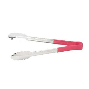 29. Winco UTPH-12R 12" Heat Resistant Stainless Steel Utility Tongs with Red Handle