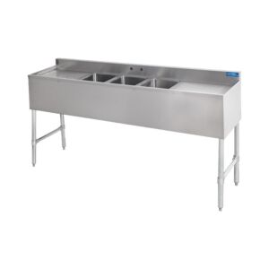4. Sapphire SMBS-4D Four Compartment Underbar Sink with 13" Left & Right Drainboard